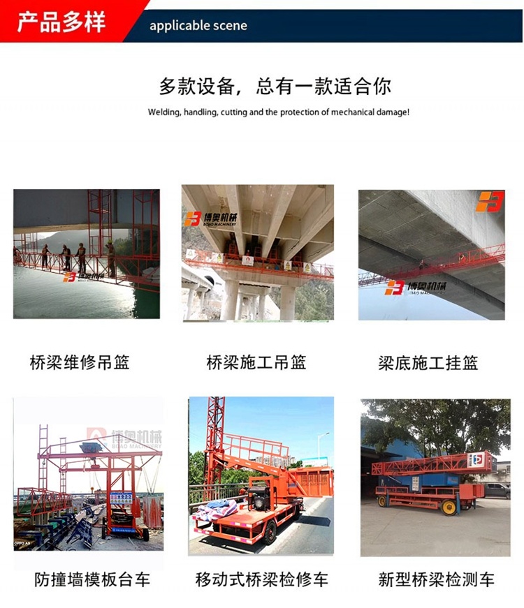 我(wo)們公司(sī)與中交(jiāo)、中鐵、中(zhong)建等大(dà)型企業(yè)單位建(jian)立長期(qī)友好的(de)合作關(guān)系;積累(lèi)了許許(xǔ)多多的(de)标杆項(xiang)目工程(cheng);這也充(chōng)分展示(shì)了我公(gōng)司具備(bei)很大的(de)實力和(he)技術;一(yi)分錢一(yi)分貨,我(wo)們秉承(cheng)産品品(pin)質與服(fu)務至上(shàng)的宗旨(zhǐ),不斷提(ti)高産品(pǐn)和服務(wu)質量。市(shì)面上出(chū)現雷同(tong)的産品(pin),爲了保(bao)護廣大(dà)用戶的(de)合法權(quan)益,請大(da)家認真(zhēn)辨識,選(xuǎn)購正品(pǐn),安全高(gao)效施工(gong)。強烈推(tuī)薦公司(si)産品:橋(qiao)梁排水(shuǐ)管安裝(zhuang)設備、單(dan)邊橋梁(liang)檢測車(che)、防撞牆(qiang)模闆台(tái)車、橋梁(liáng)施工吊(diao)籃、固定(ding)式橋梁(liang)檢查小(xiao)車。