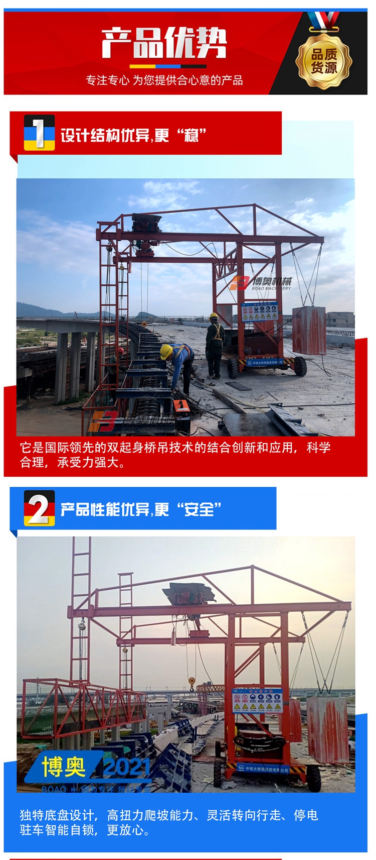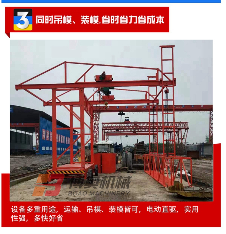 橋梁防撞(zhuang)牆模闆吊裝設備(bei)多重用途,運輸、吊(diao)模、裝模皆可,電動(dong)♻️直驅,實用性強,多(duo)快好省