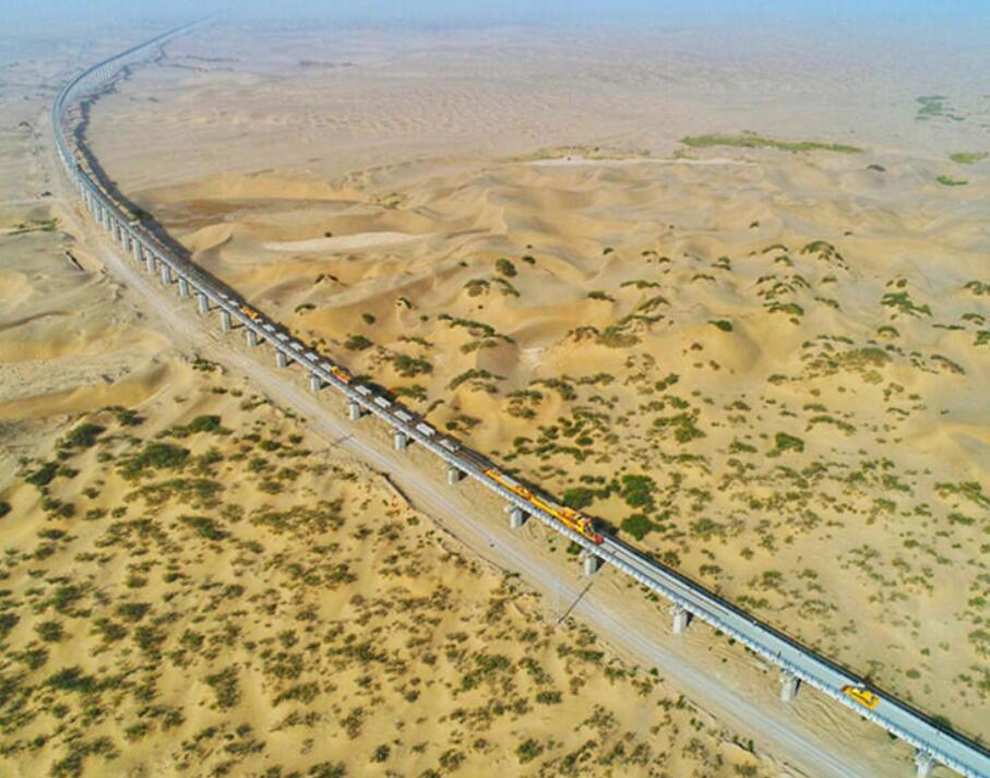和(he)若鐵路位(wei)于新疆維(wéi)吾爾自治(zhi)區和田地(di)區和巴音(yin)郭楞蒙古(gu)自治州境(jìng)内,全線共(gòng)有特大橋(qiao)19座,其中若(ruò)克雅特🔞大(da)橋長9.736公✂️裏(lǐ),平均墩高(gāo)24米,最高橋(qiao)墩達35米👌,是(shì)全線最高(gao)特大橋。