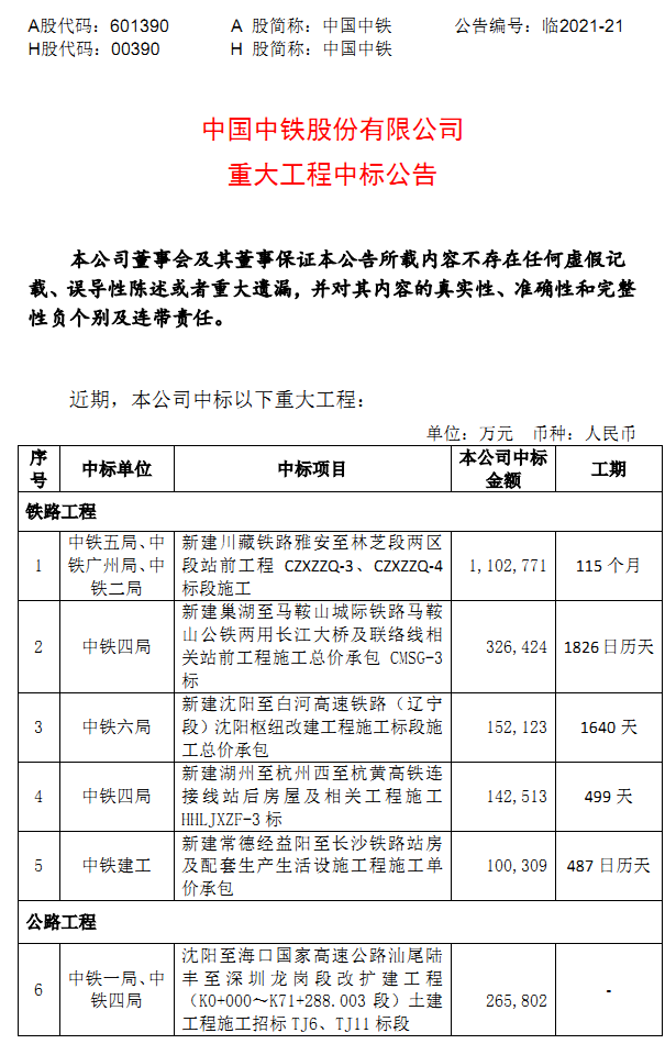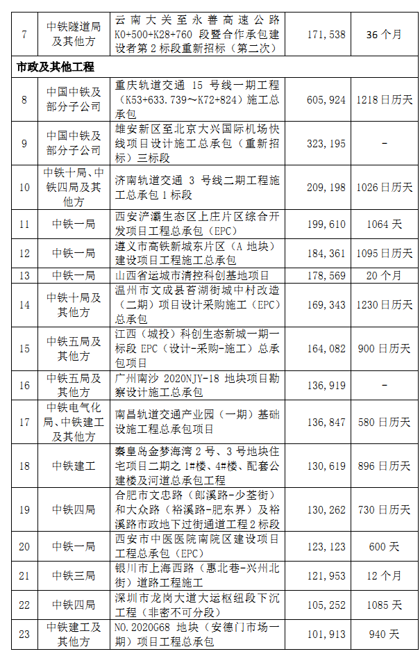 中(zhong)國中鐵(tiě)近期中(zhōng)标重大(da)工程情(qíng)況一覽(lǎn)......