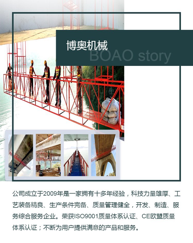 咸阳尔易金属制造集团(4G网站)定制(zhi)型橋梁檢(jiǎn)修設備廣(guang)泛适用于(yu)橋梁全面(mian)檢修加固(gù)、塗裝噴漆(qī)作業以及(jí)排水管安(an)裝工程中(zhong),類型有常(chang)規的🙇♀️,也可(ke)根據橋梁(liang)圖紙及施(shī)工要求定(dìng)制。目前該(gai)設✉️備已經(jīng)成爲全國(guó)各大橋梁(liáng)養護單位(wei)施工🈚必備(bèi)産品,柳州(zhōu)咸阳尔易金属制造集团(4G网站)作爲全國(guo)大型橋梁(liang)項目的指(zhǐ)定生産廠(chǎng)家,不斷地(di)爲全國橋(qiáo)🌈梁建設與(yǔ)養護貢獻(xiàn)企業力量(liàng)。