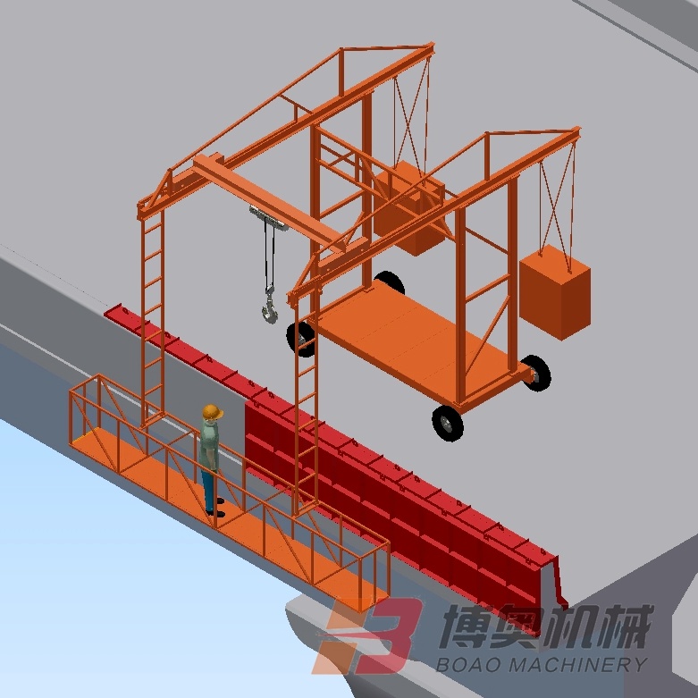 它是單梁(liang)的拼裝構造(zào),初代簡易結(jie)構演變而來(lái)。其側邊施㊙️工(gōng)吊籃則采用(yong)簡單的合頁(yè)式結構松動(dong)連🤞接,左、右;前(qián)、後晃動較🔞爲(wei)明顯,兩個電(dian)機驅動行走(zǒu)不同頻等✨,還(hái)需要更深的(de)改進。