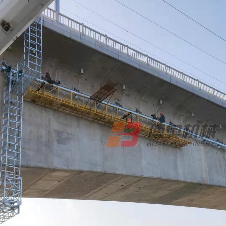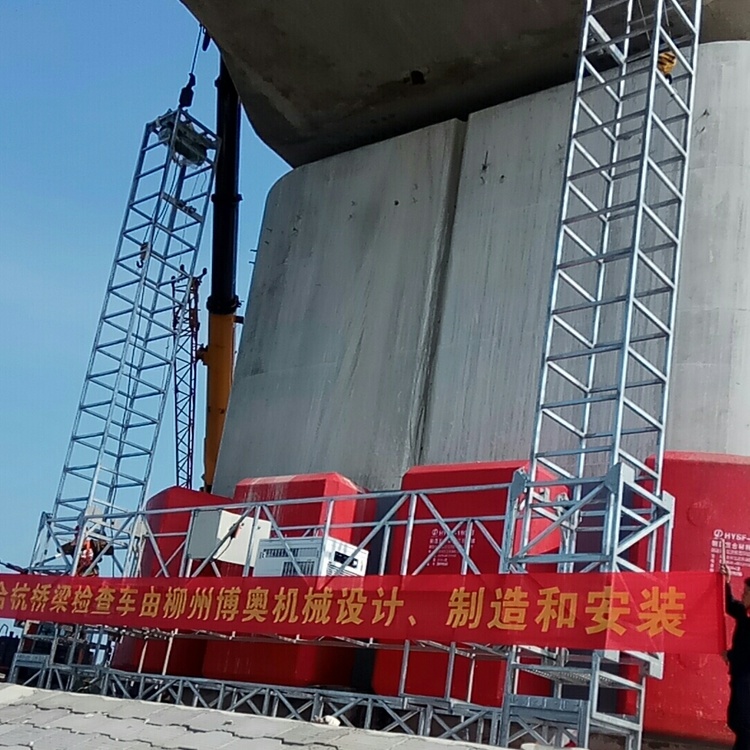 這種結(jié)構簡單(dan),組裝方(fang)便,便于(yú)拆卸和(hé)運輸。便(biàn)于對橋(qiao)梁底部(bù)進行全(quán)方位檢(jiǎn)查。車架(jià)上部安(ān)裝焊接(jie)有花紋(wén)鋼闆🤩或(huo)鋼闆網(wǎng),便于工(gōng)作人員(yuan)安全行(háng)走。