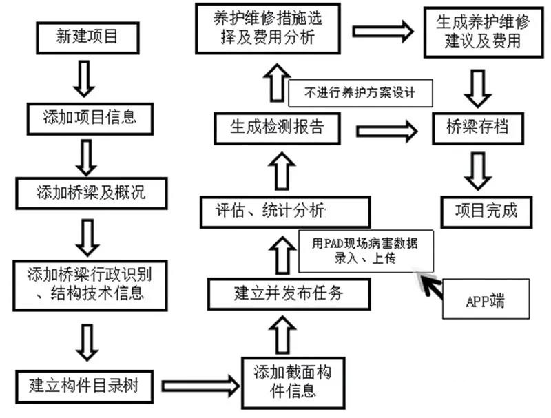 檢(jiǎn)測評估軟(ruan)件開發的(de)基本思路(lù)是設置web端(duān)和APP端兩個(gè)操🔴作終端(duān),共享統一(yī)的數據庫(ku)。web端主要用(yong)于前期行(hang)政信息、結(jié)構信息、曆(li)史養護信(xìn)息等基礎(chu)數據的錄(lu)入,構件目(mu)錄樹建立(lì)及後期報(bao)告的編制(zhì)調整等。APP端(duān)主要用于(yú)現場檢測(ce)信息錄📱入(ru),可用于橋(qiao)涵的日常(chang)檢查、經常(chang)性檢查、定(ding)期檢查與(yǔ)特殊檢查(cha),定期檢✊查(cha)時軟件的(de)操🌐作流程(cheng)如圖2所示(shi)。